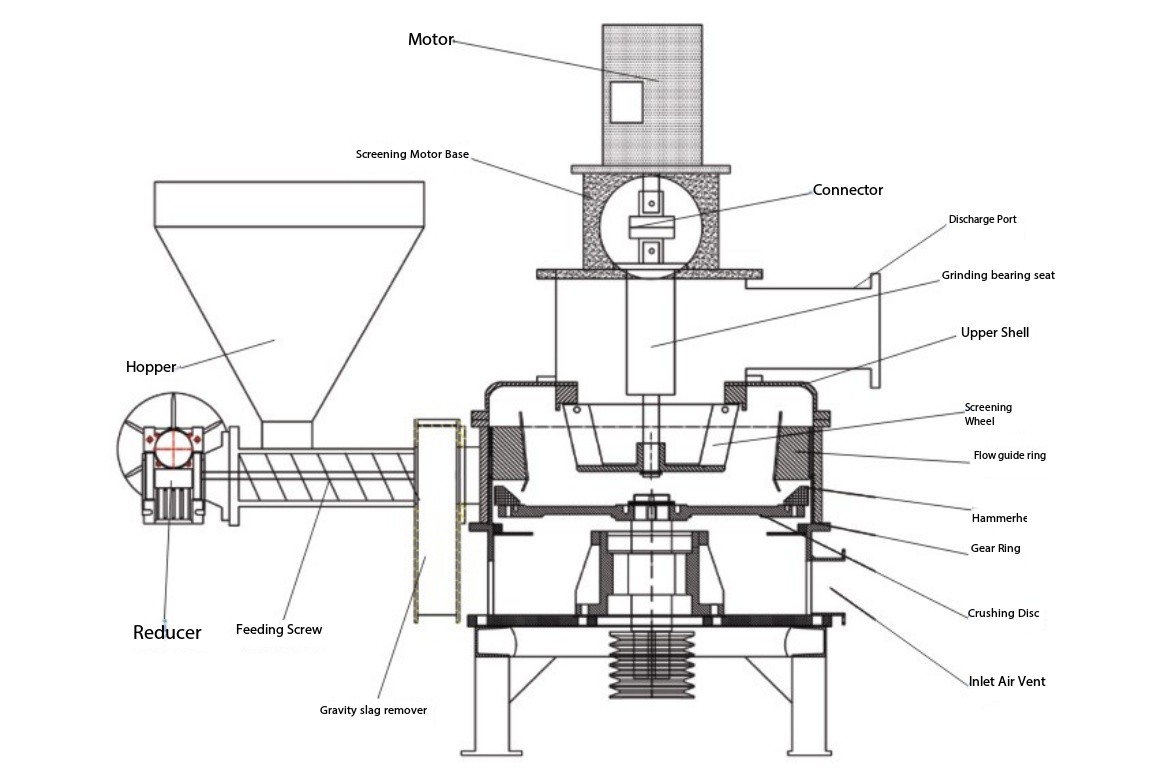 A: 비료 초미세 분쇄기의 미세도는 가변 주파수 드라이브(VFD)를 통해 분류 휠의 속도에 의해 제어됩니다. RPM을 높이면 더 미세한 분말이 생성되고, RPM을 낮추면 출력이 더 거칠어집니다. 화면 변경이 필요하지 않습니다.