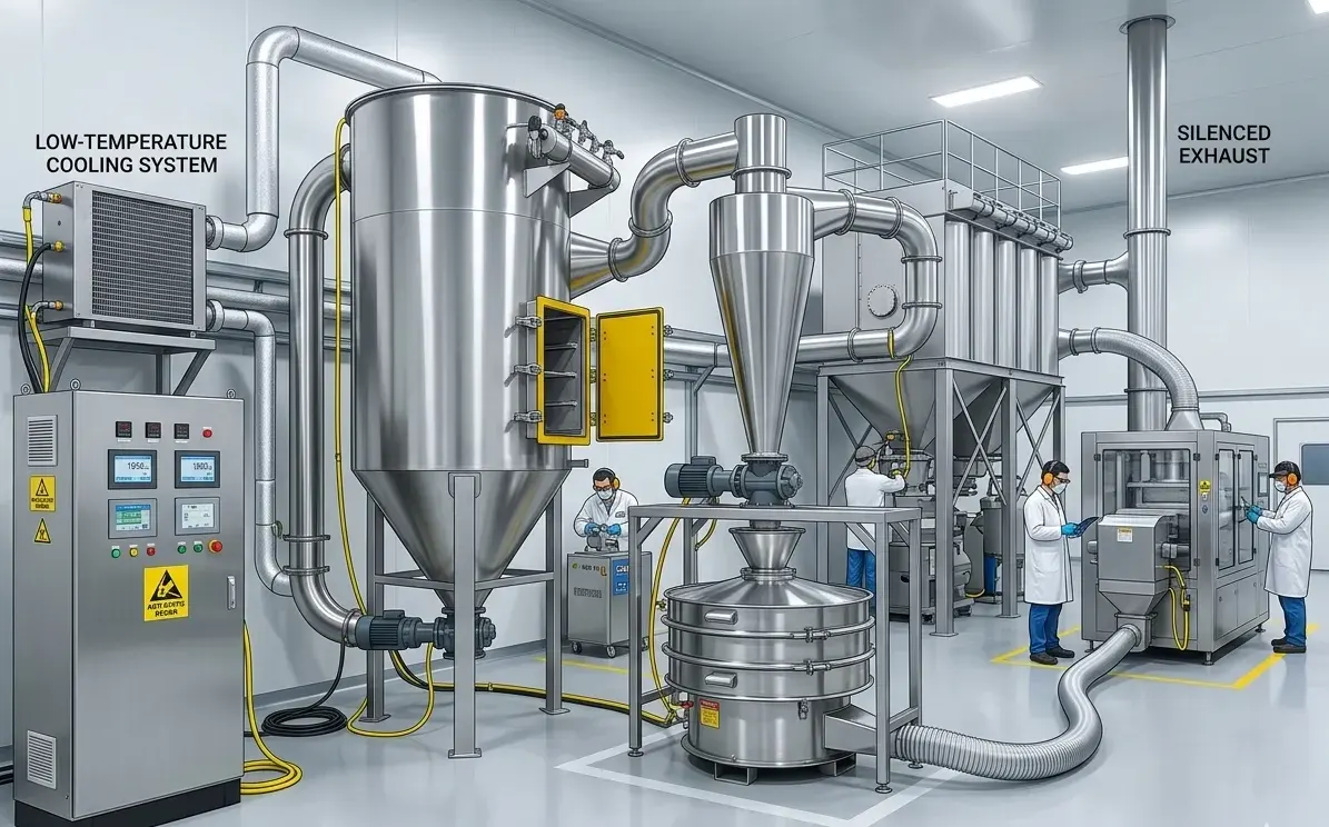 점점 더 엄격해지는 글로벌 환경 규제에 따라 Xingshengwei는 업계 발전 추세를 따라가고 환경 안전 개념을 전체 장비 연구 및 개발 프로세스에 통합합니다. Pesticide Superfine Pulverizer의 설계는 EPA, CE 및 ISO 9001 표준을 준수하며 국내 및 국제 환경 규정 준수 요구 사항을 완벽하게 충족합니다. 음압 폐쇄 루프 시스템은 먼지 누출을 방지하고 작업자의 건강을 보호하며 환경 오염을 줄일 수 있습니다. 또한 이 장비에는 정전기 방지 설계가 적용되어 농약 분쇄 과정에서 발생하는 정전기를 처리할 수 있어 가연성 또는 독성 물질을 취급할 때에도 안전한 작동을 보장합니다. 감열성 살충제의 경우 Xingshengwei는 활성 성분의 분해를 방지하기 위해 선택적 저온 냉각 시스템도 제공하며, 이는 "고객 우선, 안전 우선"이라는 Xingshengwei의 서비스 철학을 완전히 반영합니다.